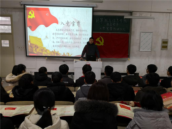 1月4日下午,计算机与信息学院举行新党员入党宣誓仪式。计算机与信息学院党委副书记江伟参加仪式。