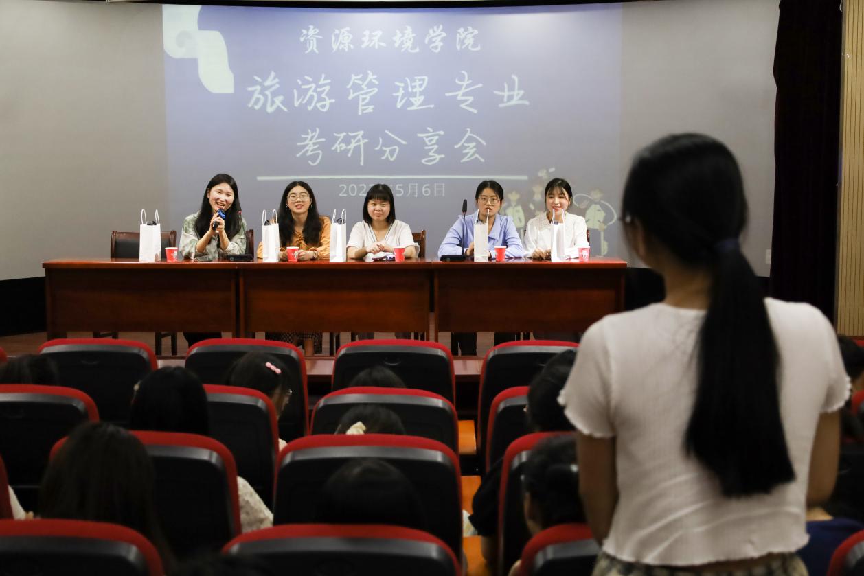 本次分享会面向全院学生,由旅游管理、环境科学、环境工程、地理科学四个专业的“上岸”名校的本科毕业生分三场进行交流,他们从院校选择、备考过程、心态调整等方面为学生们分享经验并提出建议。