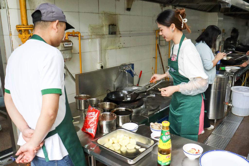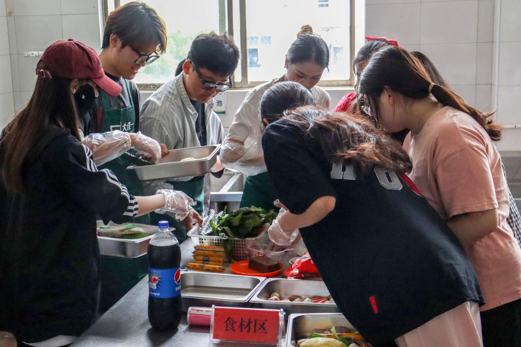 “我揉的丸子可爱吗?”“可以帮我拿一下料酒吗?”近日,学校西苑食堂的厨房里响起了此起彼伏的炒菜声,其中不时传来学生们欢快的话语声。音乐学院13名学生组成的4支队伍在此展开了一场厨艺较量。