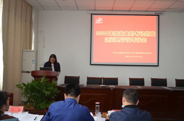 会上,各党支部书记根据学院制定的考核工作方案要求,对照考核内容,围绕履行党建工作责任情况、支部党建工作进展情况、特色工作和存在的问题、下一年工作思路和打算等几个方面依次上台述职。党委委员对联系支部进行了点评,支部书记分别做了表态发言。