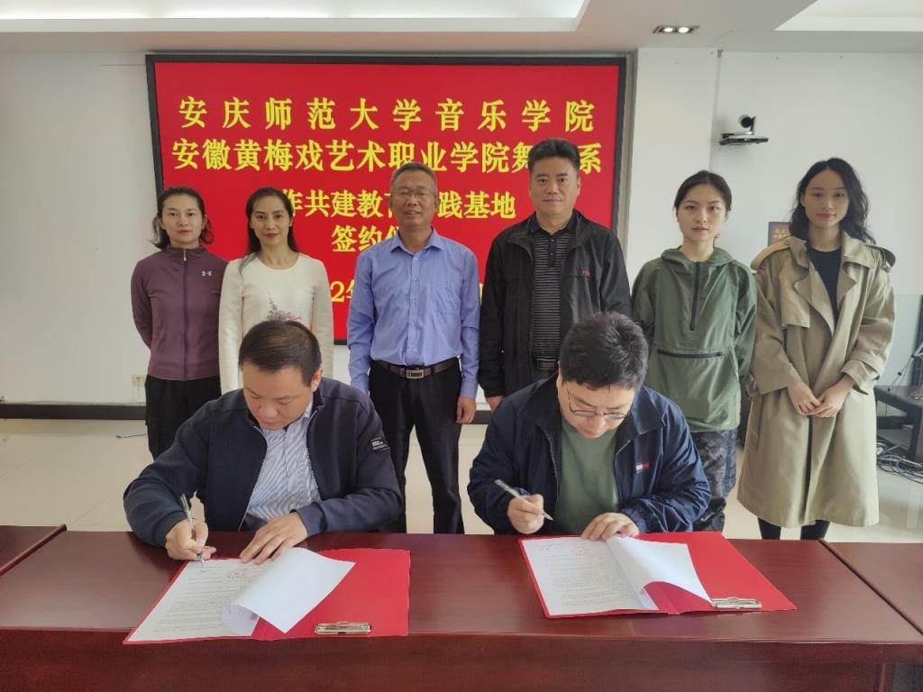 10月25日,音乐学院与安徽黄梅戏艺术职业学院舞蹈系举行舞蹈表演专业实践教学基地合作共建签约暨授牌仪式。音乐学院党委书记张铭、副院长徐冉、舞蹈专业教师代表,安徽黄梅戏艺术职业学院党委副书记、院长陈二祥及相关处室、系部负责人参加仪式。
