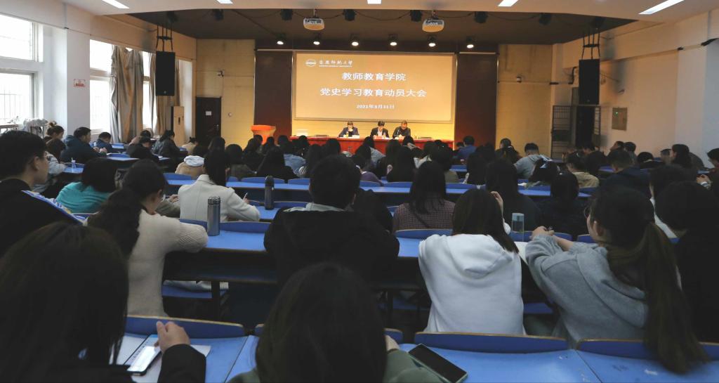 3月31日,教师教育学院召开党员大会进行党史学习教育动员。学院党委书记陈志超、院长吴云助、党委副书记许世平及全体师生党员参加会议。会议由吴云助主持。