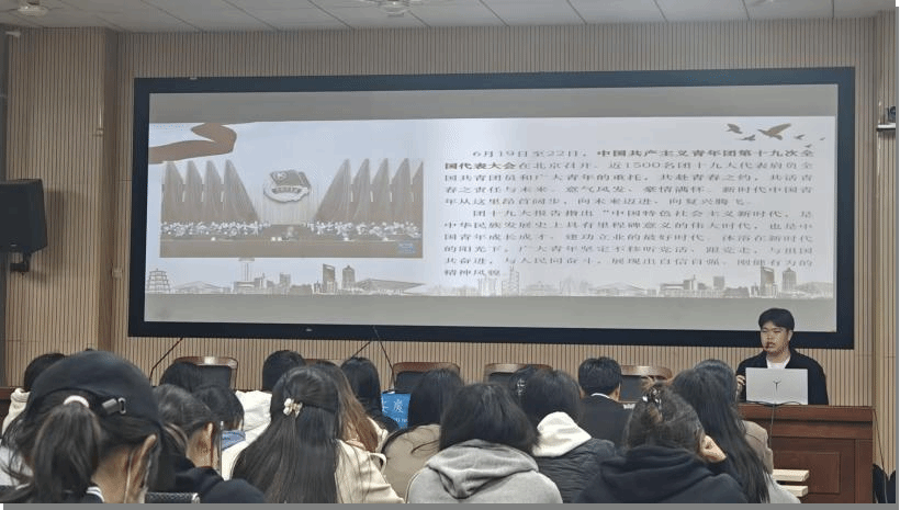 宣讲团成员、英语师范专业2022级3班易回宇在宣讲中提到,团十九大报告指出“中国特色社会主义新时代,是中华民族发展史上具有里程碑意义的伟大时代,也是中国青年成长成才、建功立业的最好时代。沐浴在新时代的阳光下,广大青年坚定不移听党话、跟党走,与祖国共奋进,与人民同奋斗,展现出自信自强、刚健有为的精神风貌。”作为新时代青年,要深刻把握时代潮流和国家形势,自觉按照党和人民的要求锤炼自己、提高自己。