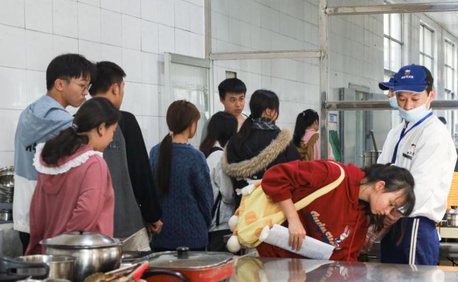 检查小组针对餐厅环境卫生、原材料的品质与储存、餐具消毒、设施设备的安全性等进行细致查看,认真核对食品保质期、留样记录、进货记录等资料,食堂经理带领学生检查烹饪、蒸煮、面点等各类操作间,讲解日常工作流程。检查小组指出了部分商品未明码标价、通风状况有待改善、物品摆放不规范等问题。