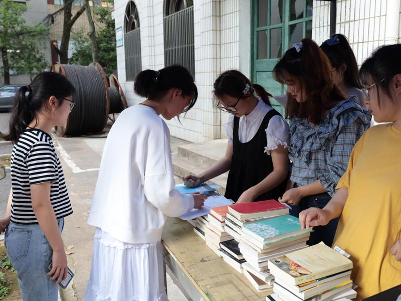 4月23日,学生们将自己要赠送的书籍登记在册,活动负责人们则将书籍分类整理,依次编号。次日,学生们可以个人上交书籍的类别为证,在同类书中选取不同的书籍编号,进行“以书换书”。换书现场,大家互相交流有关不同作家、书籍的见解,场面很是热闹。
