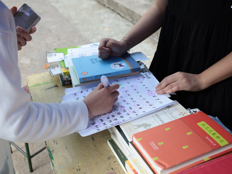 “送出一本书,再通过别人的馈赠获得一本书,就像在开‘盲盒’,我觉得这种活动形式很有意思。”中国语言文学类专业2021(7)班的胡载冉选择送出《活着》一书,提及这本书的来历,胡载冉表示,这是她曾在朋友圈参与类似交换活动得来的,同时也希望通过这次活动再次传递下去。