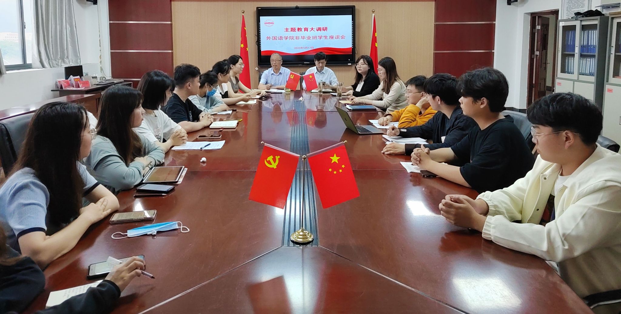 近日,外国语学院于E304召开以“如何提高在校大学生高质量就业”为专题的调研座谈会,学院党委书记李亦亮、院长王先荣出席会议,各年级各专业非毕业班学生代表参加了此次会议,会议由学院党委副书记何媛君主持。
