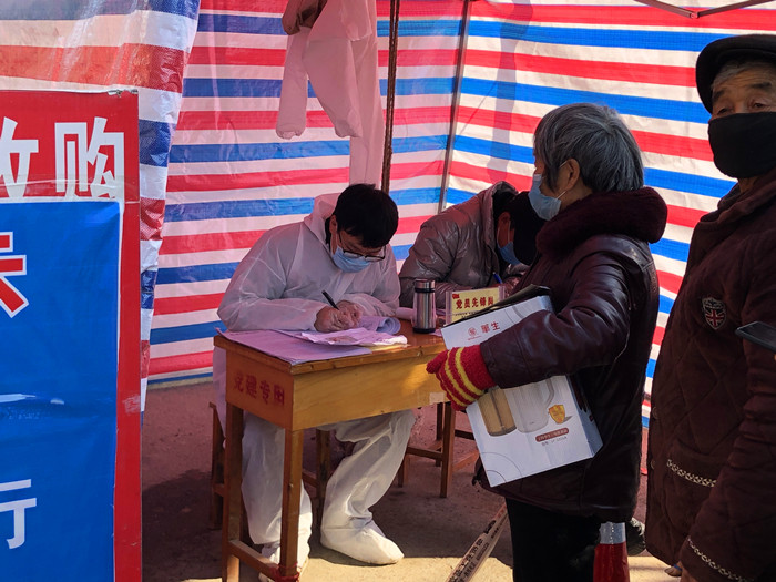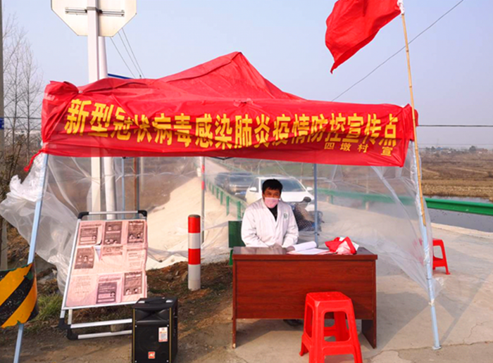 一张醒目的警示牌,一套老式的木制桌椅,这个在路旁不足十平方米的简易帐篷就是董奇峰的“战场”。“一天在岗九小时可以登记四五百人的信息,笔都要换上好几支。”董奇峰解释,他每天的工作任务就是在镇上总路口把控和登记进出人员的信息。
