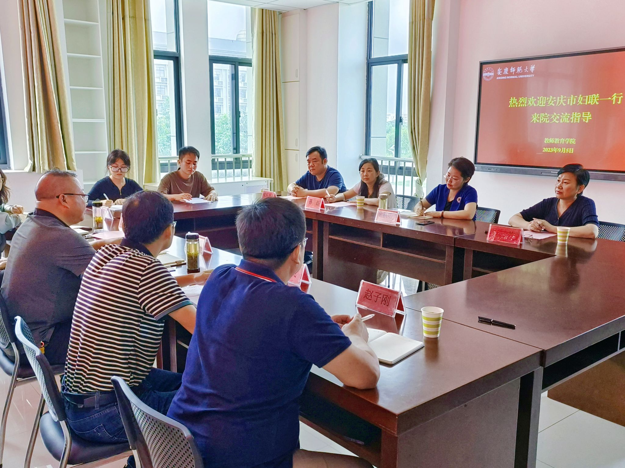 9月5日,安庆市妇联党组书记、主席金秋明一行来教师教育学院就校地合作和安庆家庭教育研究指导中心工作开展调研,学院领导吴云助、许世平、陈效飞和部分教师参加调研座谈会。