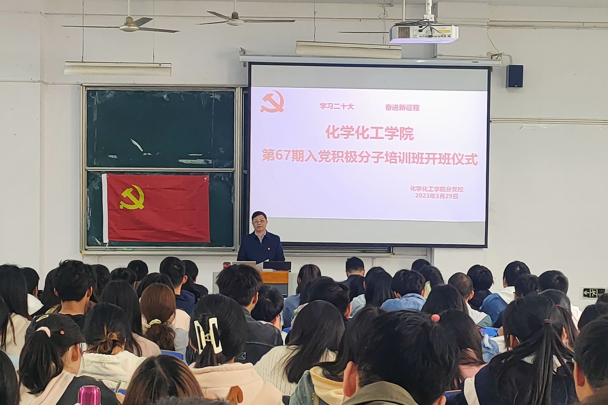 3月29日,化学化工学院举行第67期入党积极分子培训班开班仪式。学院党委书记李新建、培训班班主任及各学生党支部书记出席此次开班仪式。会议由党委副书记鲍青燕主持。