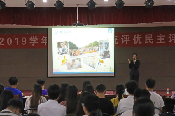 5月29日,2018-2019学年学生社团系统评优民主评议大会在大学生活动中心举行。校团委副书记、学生社团联合会指导老师方蓬,校团委秘书、物理与电气工程学院团委负责人,学生社团联合会主席团成员以及各社团代表参加考评会议。