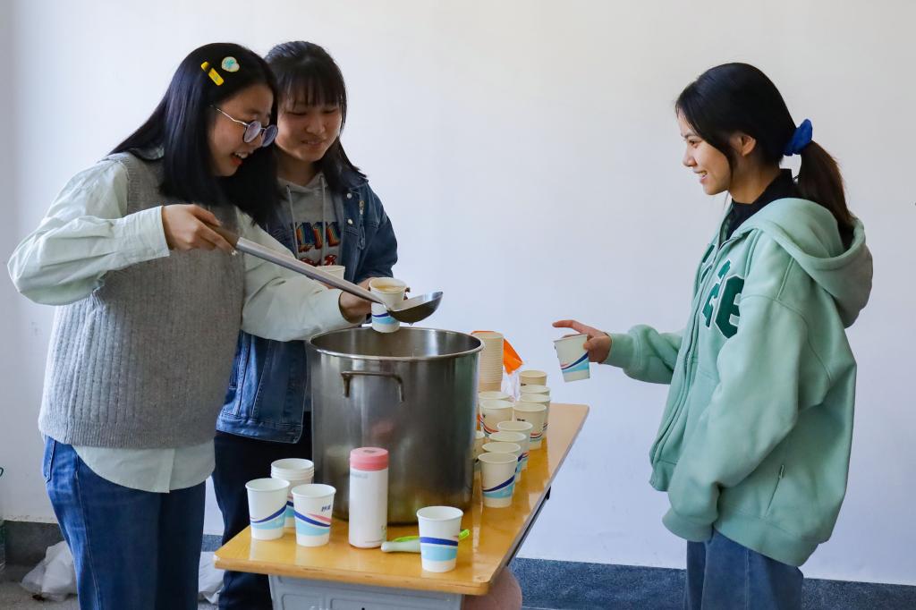 “此次活动为紧张备考的学子们送上了一份暖心的鼓励,以梨汤润肺、用行动润心,希望这些学生都能放平心态,全力以赴备战考研。”学院党委副书记鲍青燕表示,现在正值考研复习的“火热”阶段,学院党员师生坚持“一切为了学生,为了学生的一切”,用心用情用力解决学生们的切身问题,以学院关怀护航学子考研路。(撰稿:学生记者 李婷 黄颖 摄影:学生记者 朱秀萍 李妍纯惠 审核:鲍青燕 赵丽丽)