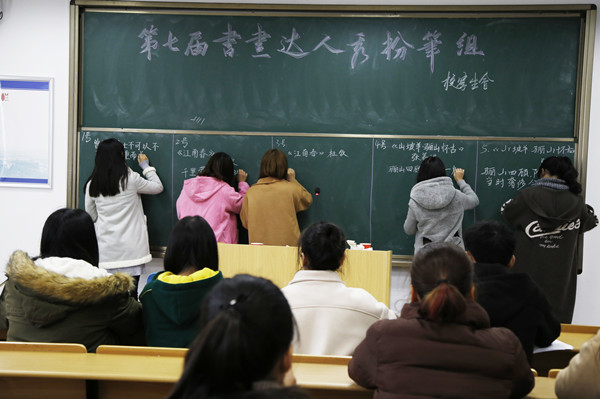 11月18日,第七届书画达人秀比赛在外国语学院大楼举行,本次比赛主题为“丹青绘宜城流韵,翰墨书师大生辉”,分为书法、绘画两大类,硬笔、粉笔、软笔、绘画专业及绘画非专业五组,共有1200余人参加此次比赛,人数创历年新高。