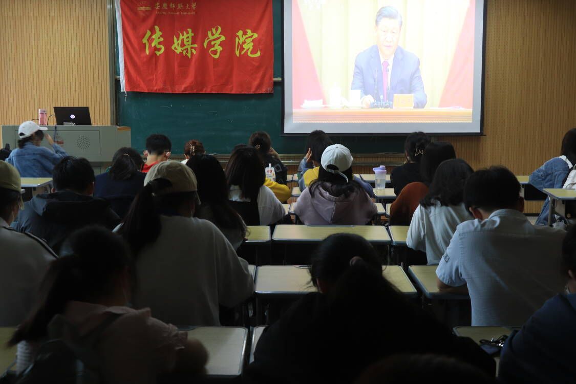 正值中国共产主义青年团成立100周年之际,5月10日,传媒学院组织学生观看庆祝中国共产主义青年团成立100周年大会直播,该院近100名青年团员集中观看了直播。