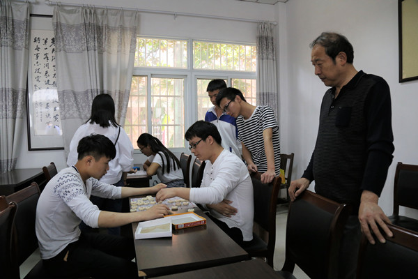 beat365官网关工委主任、老领导朱建华,关工委毛可友和图书馆采编部老师徐坤也参加了本次大赛。朱建华和徐坤平时都非常喜欢下象棋,两人经常在一些比赛中获奖。朱建华表示,下棋可以让人更加年轻,保持好的心态,大学生的年轻写在脸上,而他的年轻留在心里。