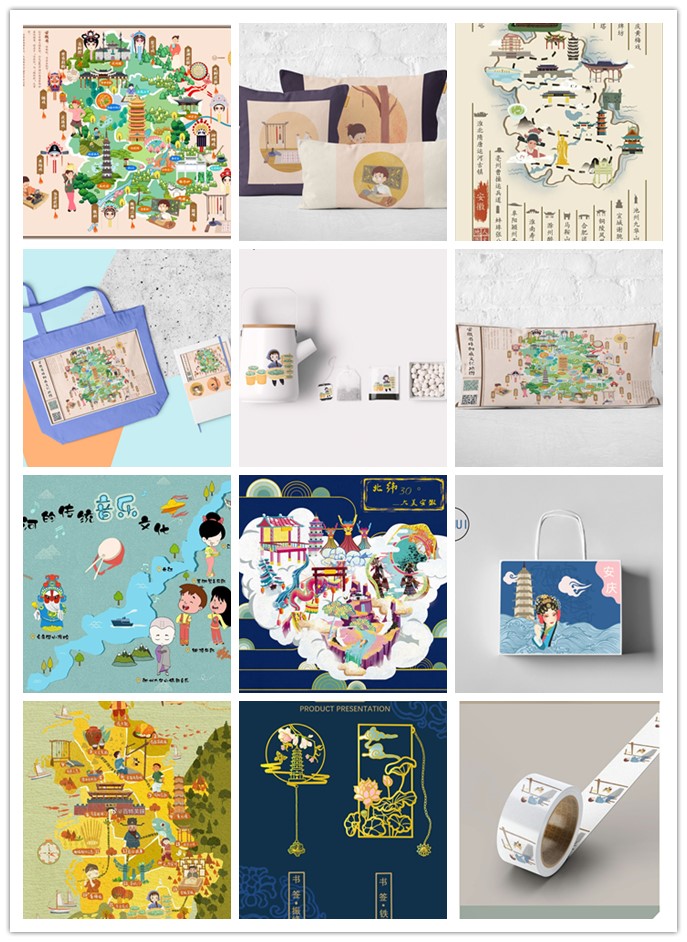 除了绘制地图,每组还根据地图创作出衍生文创产品,在书签、杯子、钥匙扣等生活用品上加上安徽文化元素,将所制地图印刷在抱枕、挎包等物件上。目前,部分文创产品已经制成成品,将在该校美术学院艺术节中展出。“我们把产品实物化,也是更想契合文创市场,便于向大众传播安徽文化。”张丽说。