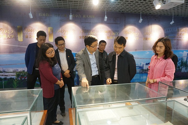 张红飞一行先后参观了安徽师范大学校史馆、档案馆,并与安徽师范大学办公室党支部联合举办了“重温校史、不忘初心”主题党日活动交流座谈会。安徽师范大学办公室主任曾黎明对支部一行表示热烈欢迎,并介绍了安徽师范大学的历史沿革、发展战略以及办学成就。张红飞指出,安庆师大与安徽师大同根同源,血脉相连,肝胆相照,携手并进,在长期的办学发展历程中,结成了深厚友谊,手足之情在共谋发展道路上弥足珍贵。张红飞强调,支部全体党员要始终围绕高水平大学建设目标和学校中心工作,不忘初心,牢记使命,充分发挥参谋助手、综合协调、调查研究、督查督办“四大职能”,强力推进“五型机关”建设,努力为建设高水平大学而不懈奋斗。双方人员分别围绕双一流建设、议事决策机制、对口扶贫、保密工作、督查督办、信息公开、公文流转及法律事务等方面,进行一对一的深入交流。