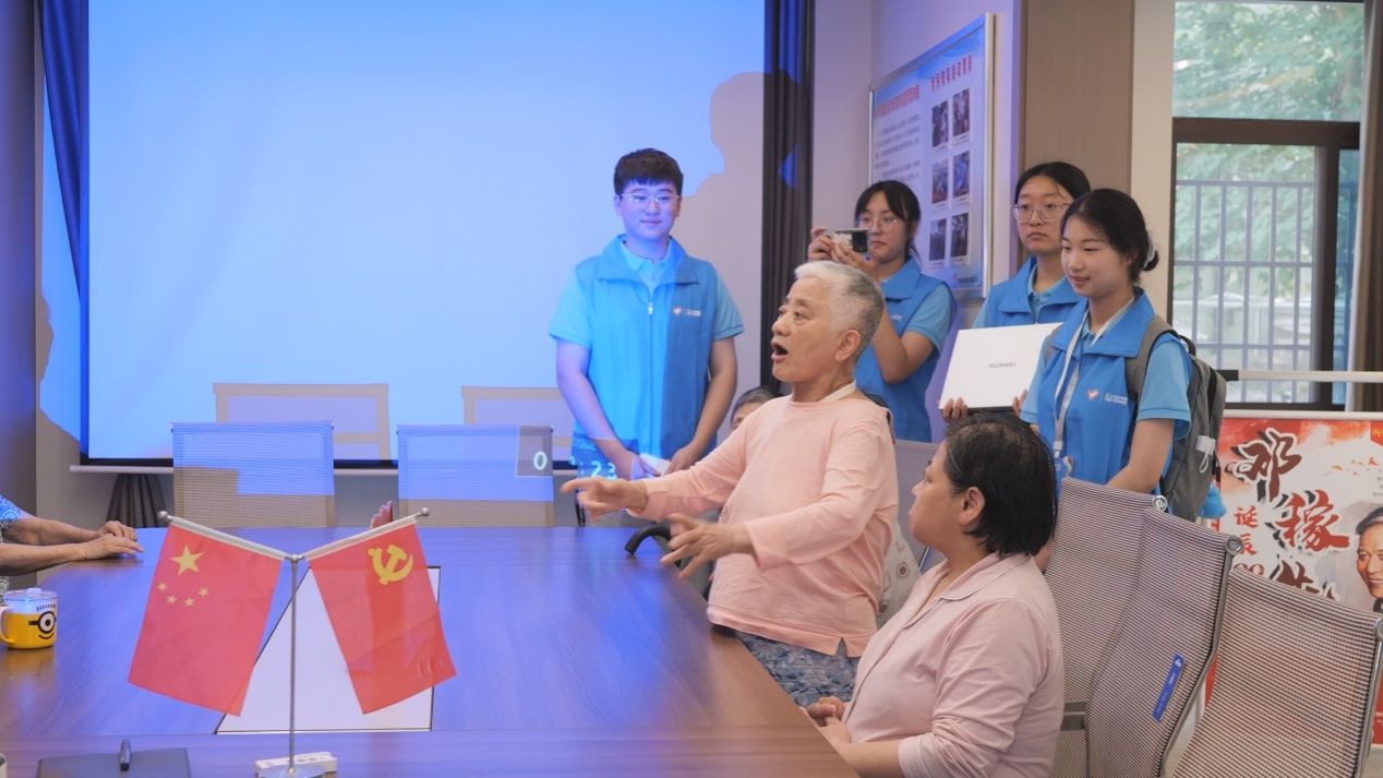 “唱支山歌给党听,我把党来比母亲……”任奶奶凭借着一副好嗓子,以安庆方言为祖国献唱,将现场爱党氛围推向高潮。虽然年老体弱、咬字不清,但她的声音铿锵有力,节奏把握精准。一曲唱罢,她说:“时过境迁,不忘的是老党员们对党、对祖国的无限忠诚。”