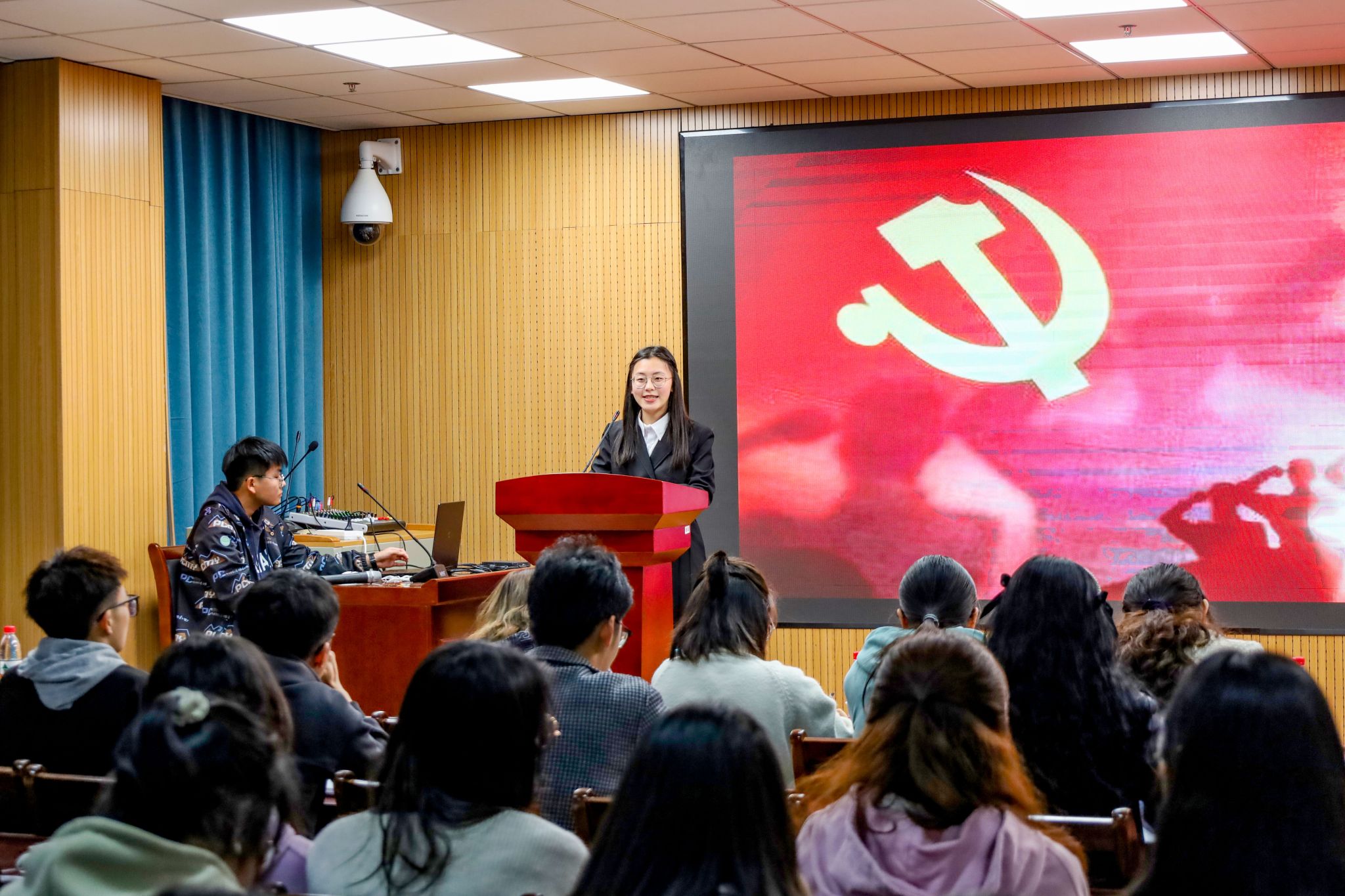 从世界首颗量子卫星“墨子号”成功发射到“神舟十五号”载人航天飞船顺利飞天,从河南春晚“唐宫夜宴”展现的文化自信到北京冬奥会开幕式树立的文化标杆……在场学生跟随着各组选手的演讲,穿梭于中国共产党百年以来的峥嵘岁月,体悟了革命先辈的榜样力量,领略了当代中国的大国风貌。