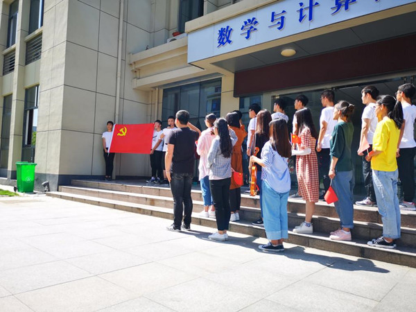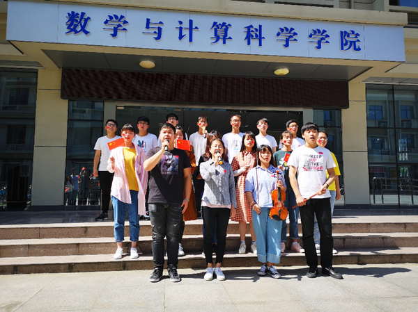 近日,数学与计算科学学院学生第二党支部全体党员带领2018级学生开展快闪拍摄,纪念五四运动一百周年,同唱《我和我的祖国》,在向祖国的深情告白中,表达了祝福祖国的美好心愿和报答祖国的志向。