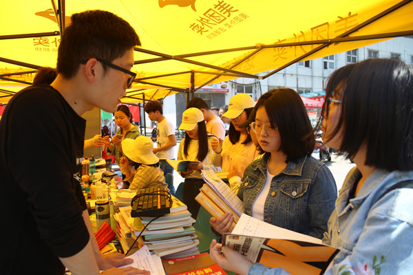 中午十一点烈日炎炎,暑气蒸人,但同学们前来参加活动的热情却没有受到丝毫影响。“我今天买了两本有关英语六级词汇和阅读的书籍,为下学期即将到来的英语四、六级考试做准备。”地理科学专业2018(2)班王丽雯说,这次活动不仅可以买到便宜的书籍,相关知识笔记也很详实,还可以直接对话学长学姐,咨询考研准备事项,今后还会积极报名参加类似活动的。