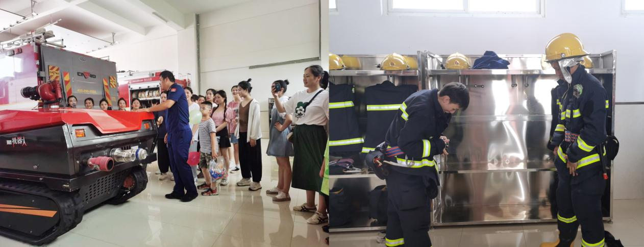 演出结束后,实践团跟随消防官兵参观了安庆市消防支队培训基地,体验他们的训练过程,并进行了消防设施的使用学习。