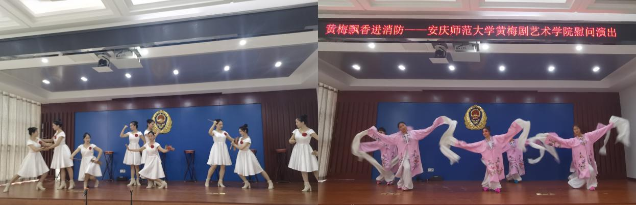 6月26日,黄梅剧艺术学院暑期“三下乡”社会实践团在指导教师的带领下,前往安庆市消防支队培训基地开展慰问演出,为消防官兵们送出精彩文艺节目,弘扬黄梅戏文化。