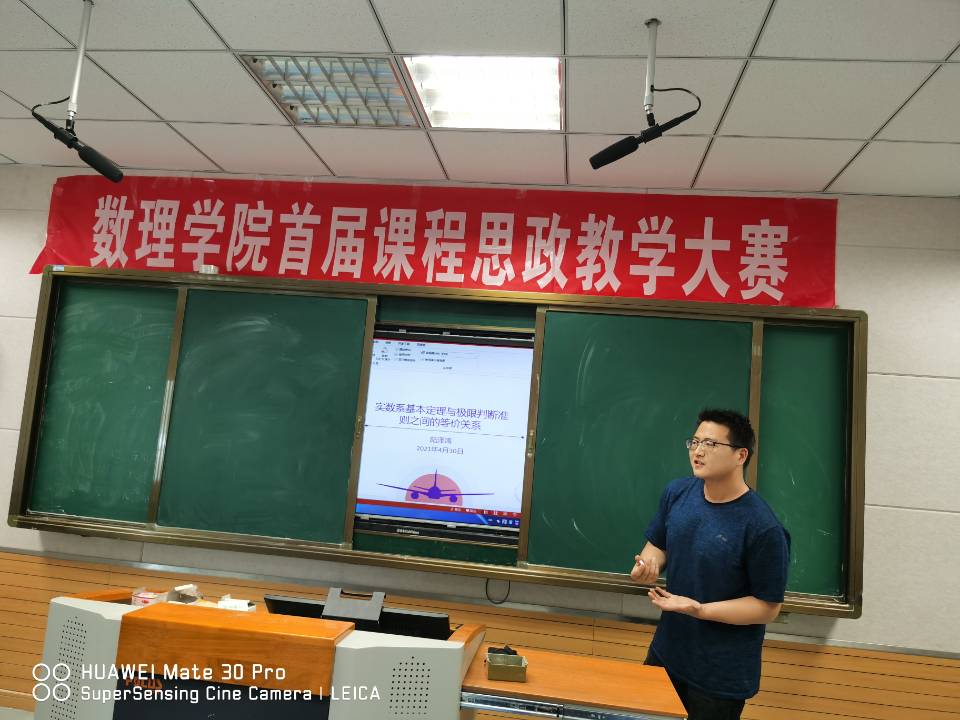 4月30日,数理学院在文津楼105教室举办首届课程思政教学大赛。学院党政领导钟金标、申传胜、张海、何骏,各系(部)主任,以及部分师生参加,学院副院长张海教授主持本次比赛活动。