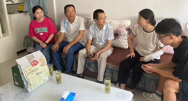 走访到一户学生家中,走访组一行都代表学院对学生及家人表达了关心并送上了慰问品,随后亲切地与学生及家长进行交流,详细了解了学生家庭经济状况、暑期期间安排、在校学习情况等,认真听取了学生及其家庭目前面临的困难,向学生家长介绍了党和政府的相关政策,反馈了学生在校表现情况。针对离校未就业的学生,走访组深入了解了他们在求职过程中遇到的主要困难和问题,对其开展个性化职业规划指导,帮助学生及家长分析存在的问题,通过前期的访企拓岗加强就业结对帮扶;针对有意向秋季入伍的2022届毕业生,走访组一行从参军的意义、应征条件、参军政策和退役发展等方面向学生本人及家长进行了详细介绍,有效激发了学生的家国情怀和参军入伍热情。家长们对学校老师顶着烈日来家访表示很感动,用朴实的话语对国家、学校、老师给予的关怀及资助表示感谢,受访学生们也纷纷表示将怀揣这份温暖发奋学习,努力做一个报答父母、感恩学校、回馈社会的新青年。