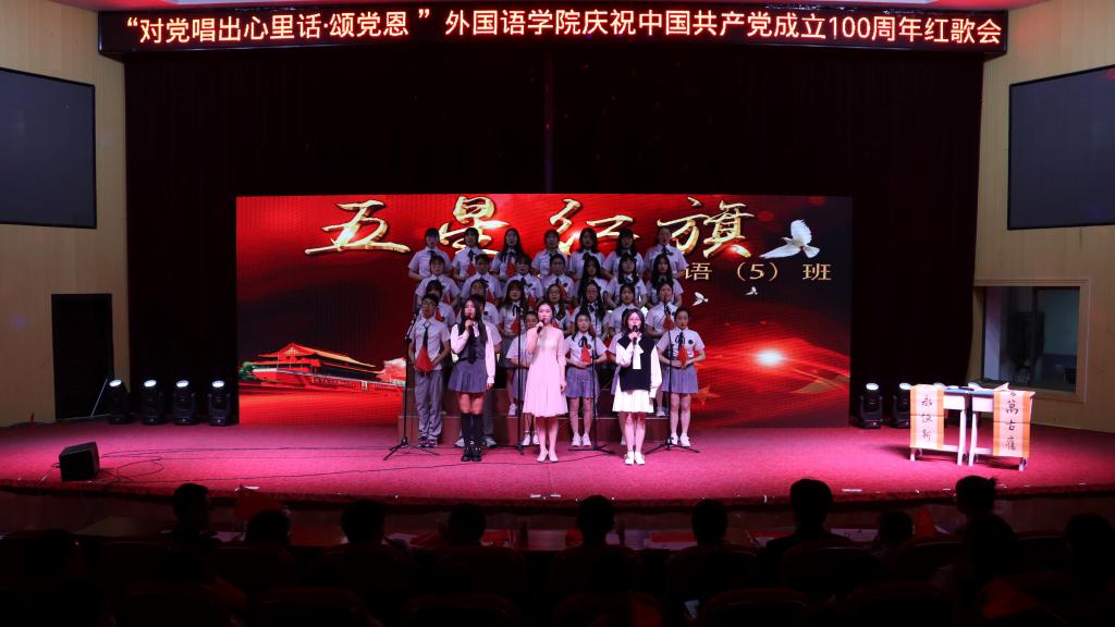 4月18日晚,beat365英国官网网站外国语学院开展“庆祝中国共产党成立100周年红歌会”活动,12个班级唱响红歌颂党恩,图书馆东厅内歌声悠扬。学院院院长王先荣、党委副书记夏斐等400余名师生共同观看。