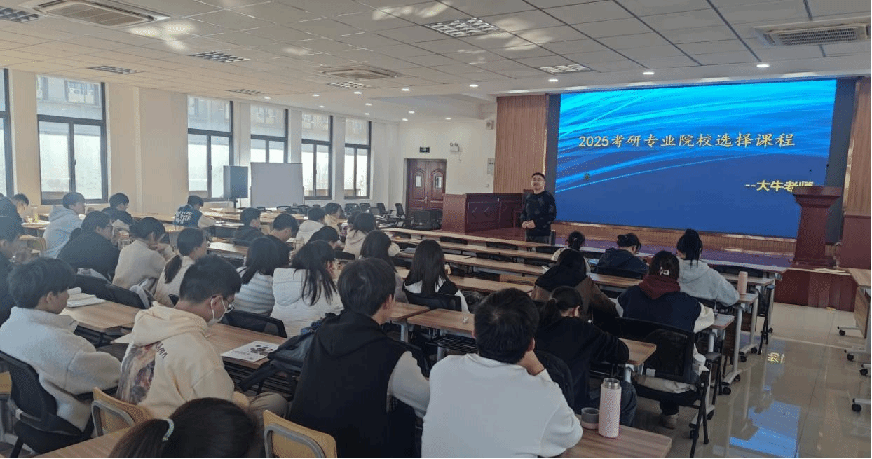 指导教师从考研形势、院校选择、备考课程等三个方面展开深入剖析。他表示,考研不仅是一个提升学历的过程,更是一个提升自我、拓宽视野、锻炼能力的过程。会上,指导老师分享了大量我院近年来考研成功上岸的学生案例,进一步提高了讲座内容的现实指导意义和针对性,增强了广大学子备考的信心。听完讲座,同学们纷纷表示将提前明确考研目标、定位目标院校、科学规划备考过程。