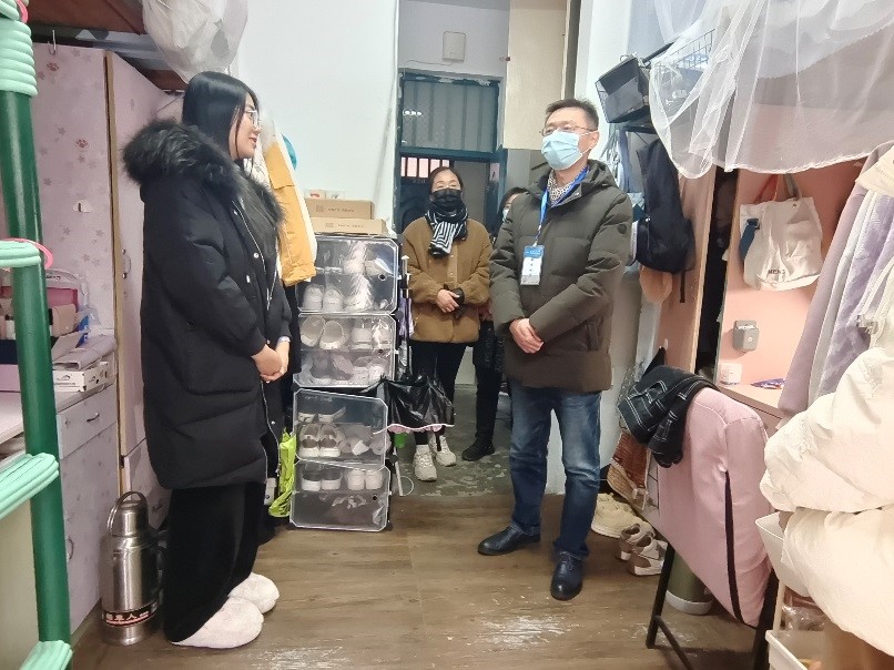 12月1日,数理学院全体班子成员、辅导员老师深入学生宿舍,对宿舍卫生安全和线上网课学习情况进行督导检查。