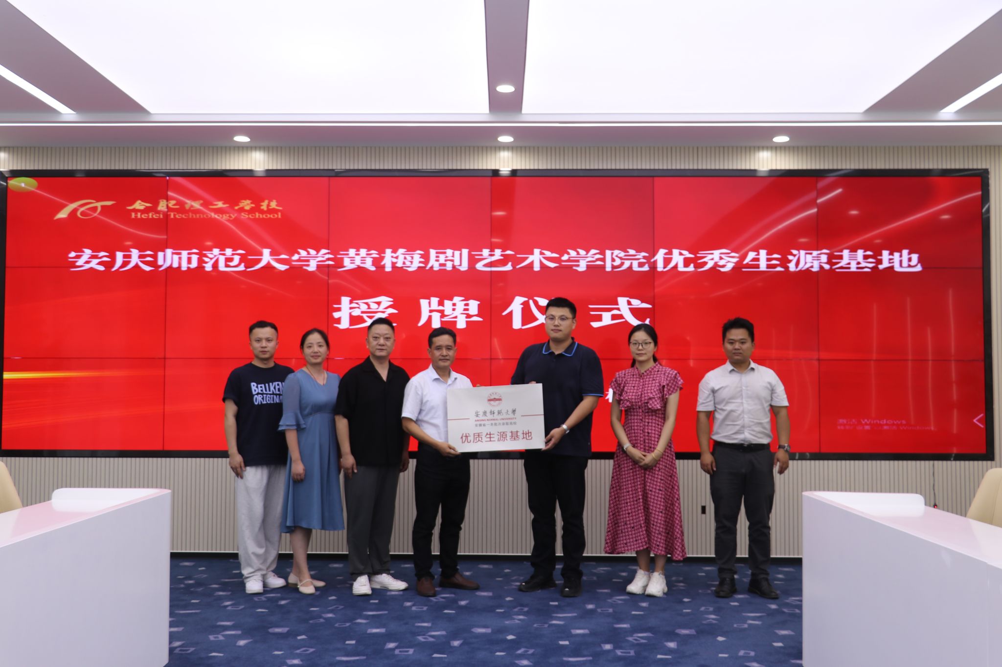 7月4日,黄梅剧艺术学院副院长储著炎、刘国平一行赴合肥理工学校开展招生宣传及相关调研工作。合肥理工学校校长张晟、副校长阮姗姗等参加签约和授牌仪式。