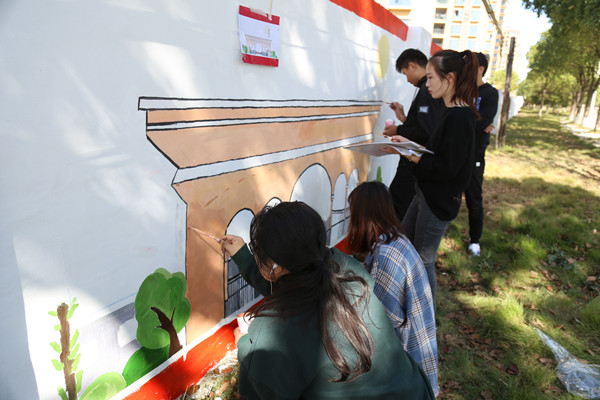 “画墙绘是发挥特长表达爱校感情的一种方式,以班级为单位,互相学习,把教室搬到校园的每一个角落,让学生积极参与学校的建设也是教育的一部分。以墙绘的方式让学生的作品给全校师生审视,可以促进他们的学习,学以致用,对他们也是一种鞭策。”美术学院党委副书记查国平说,希望这些墙绘可以成为一种特色,一道风景,一份回忆。(文/学生记者 邱焱平 图/学生记者 王艾林)