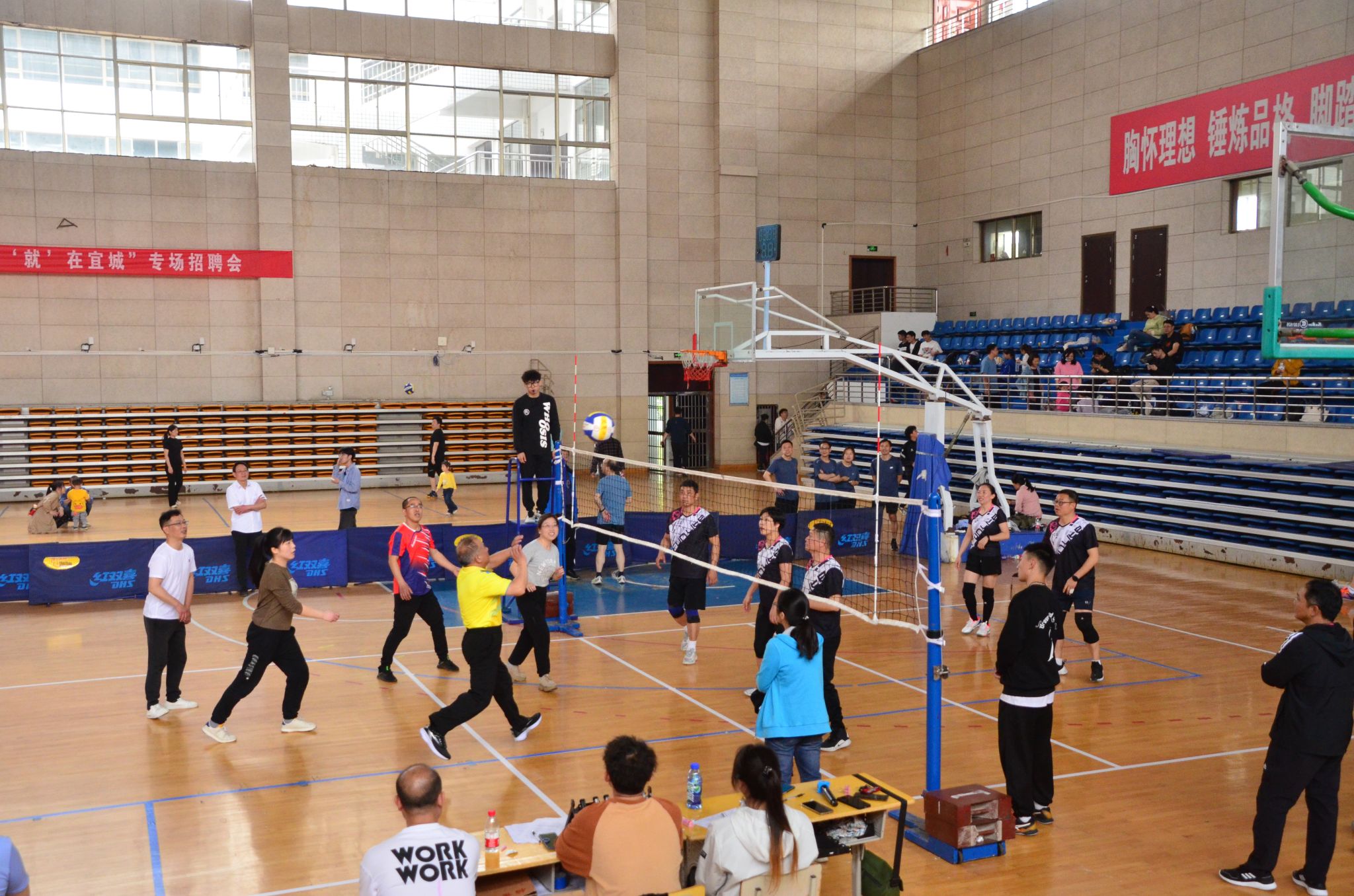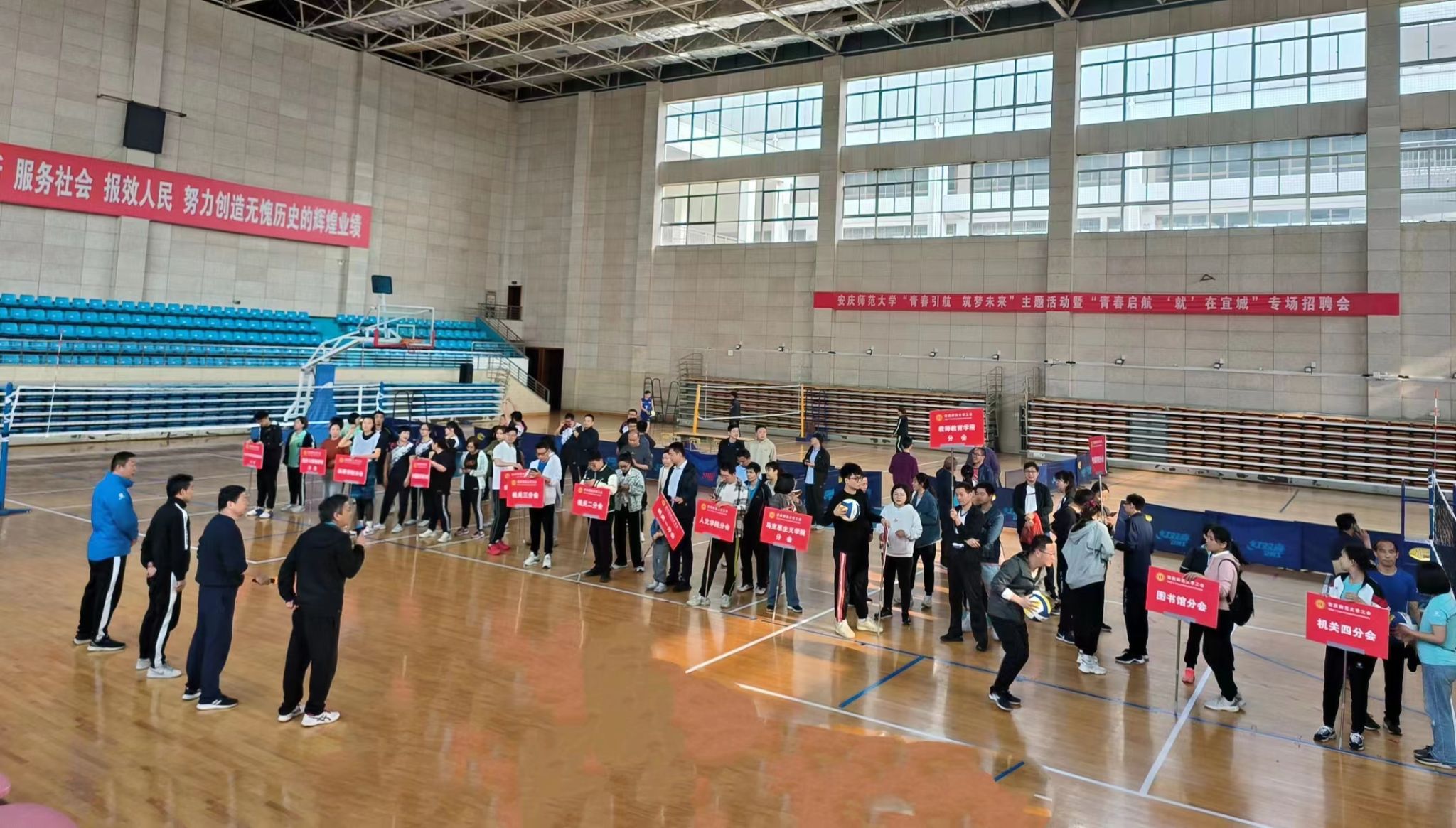 4月15日,beat365英国官网网站第五届教职工气排球比赛龙山校区体育馆开赛。本次比赛由校工会主办,教职工气排球协会承办,来自全校18个分工会、约180名教职工参加本届比赛。