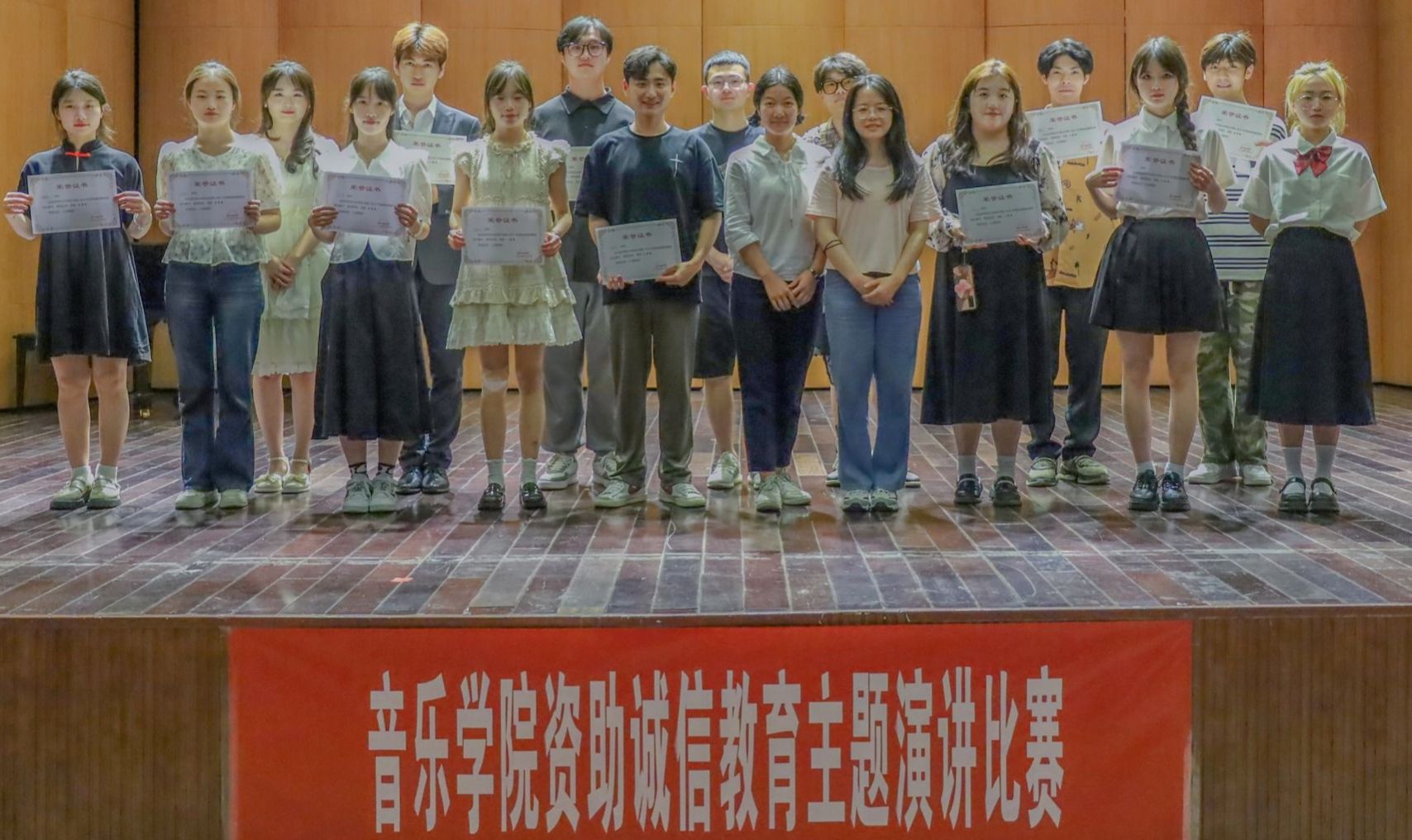 6月9日,音乐学院在音乐厅开展“诚信教育”主题演讲比赛,来自不同年级的11名选手齐聚一堂,各展风采。