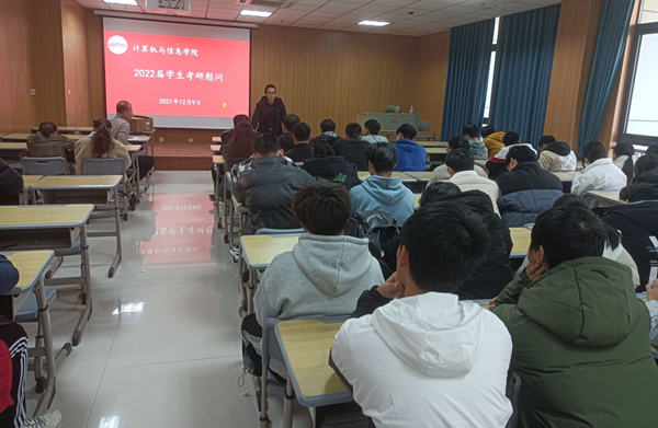 为帮助考生舒缓备考压力,增强考研信心,做好考研最后阶段的应对工作,12月9日,计算机与信息学院于L楼314举办了2022届学生考研慰问会,学院党委副书记江晋剑、毕业班辅导员及近50名考研学生代表参加了此次会议。