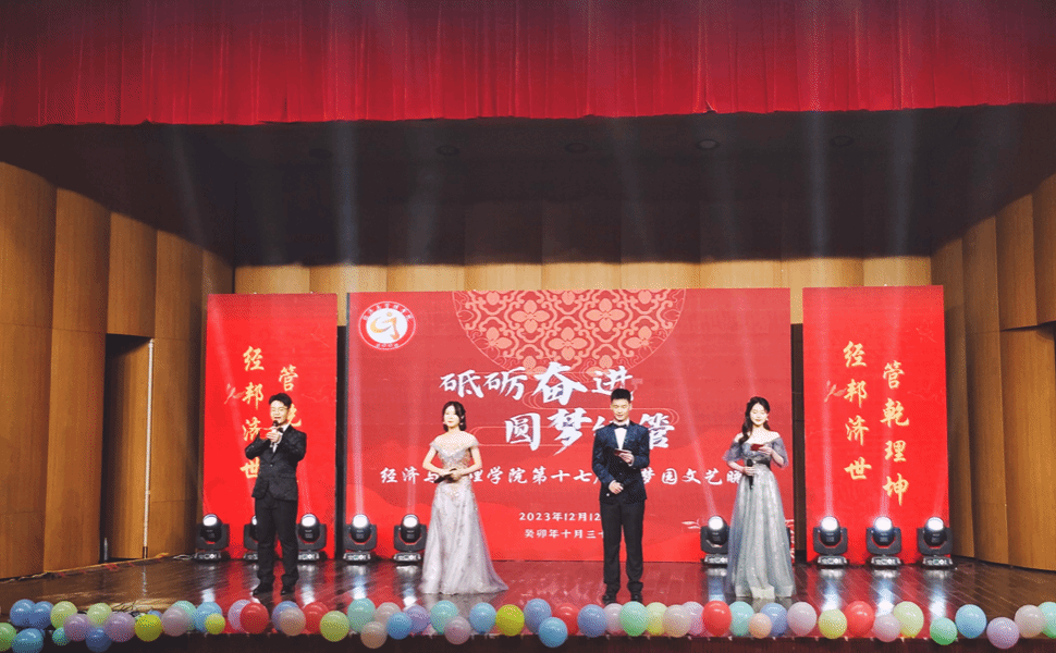 12月12日,经济与管理学院在音乐厅举办第十七届商梦园晚会。教务处潘锦云处长、学院党政班子以及近400余名同学到现场共同欣赏了一场精彩绝伦的视听盛宴。