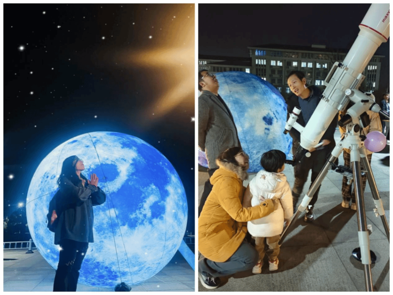 “木星光芒舒紫焰,玉出昆山珠出隋”,同学们通过天文望远镜感受木星的魅力,让远在天边的星球也能近在眼前。在现场,天文协会学术部成员向大家科普了木星和土星的相关知识:“木星,是太阳系中距离太阳第五近的行星,是一个巨大的气态巨行星。土星,则是太阳系第二大行星,距离太阳14.37亿千米,也是气态巨行星。土星环是太阳系中最大的光环结构,最早是1610年由伽利略用天文望远镜发现的。”在学术部成员的科普下,同学们了解到更多有趣且神秘的天文知识,点燃了对科学的兴趣与好奇心,在观测与游戏中体验了一场奇幻的科普之旅。