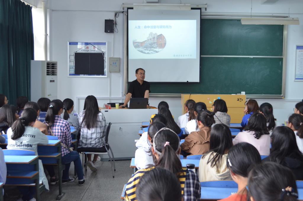 讲座中,陈党生校长结合自己的求学、工作和生活经历,从五个方面展开讲述: 人生,命中注定与顺势而为;择业,价值实现与社会需求;教育,生命平等与个性发展;教师,酸甜苦辣与职业成就;未来,理想追求与行动实践。陈校长通过自己的人生经历向在座的同学们阐明了:机遇偏爱有准备的头脑;适合自己的,就是最好的;人生需要真善美等为人为师的真谛,赢得了同学们的阵阵掌声。