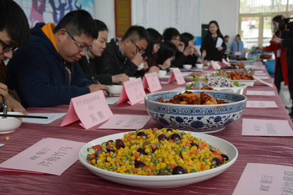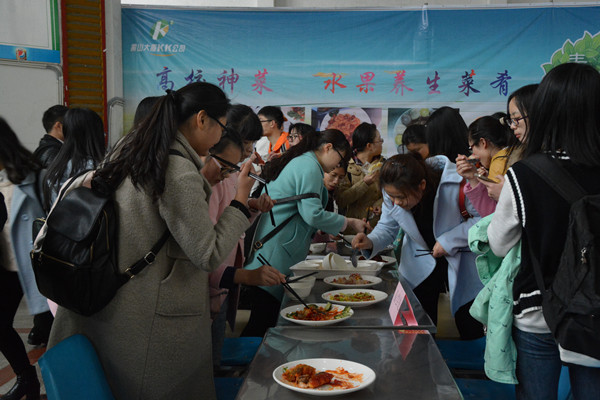 3月24日下午,美食节伴着下课铃准时开幕,本次活动共推出24道菜肴,包括8道水果菜,16道精品菜。菱湖校区的学生会成员和老师们将从形态,口感,营养卫生,菜名四个方面票选出最受学生欢迎的菜品。