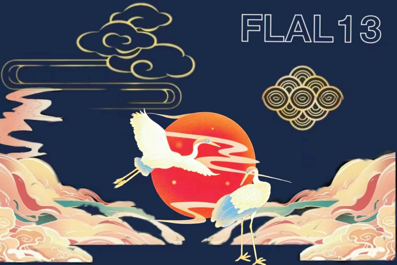 2022级外国语言文学类(13)班从中华传统文化中汲取创作灵感,他们以云鹤高飞腾云奔月展现本班凌风破浪击长空,擎天揽日跃龙门的壮志。“鹤乘甘露游东海,松披祥云挺南山。我们将中华优秀传统文化同英语文化相融合,在彰显文化底蕴的同时也体现了青春无限、创意不止的理念。”2022级外国语言文学类(13)班刘文康如是说。