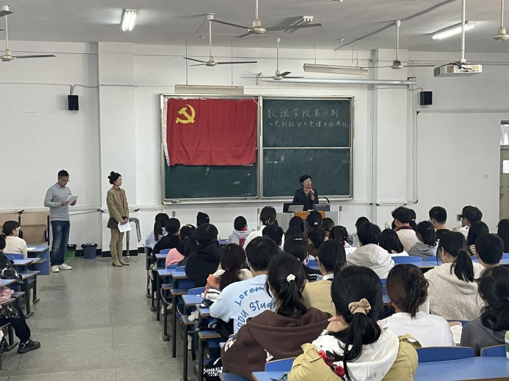 10月12日,数理学院在C208教室举行第66期入党积极分子培训班开班典礼。典礼由学院党委副书记彭芳珍主持。学院各支部书记、党委秘书和第66期全体入党积极分子近200人参加开班典礼。