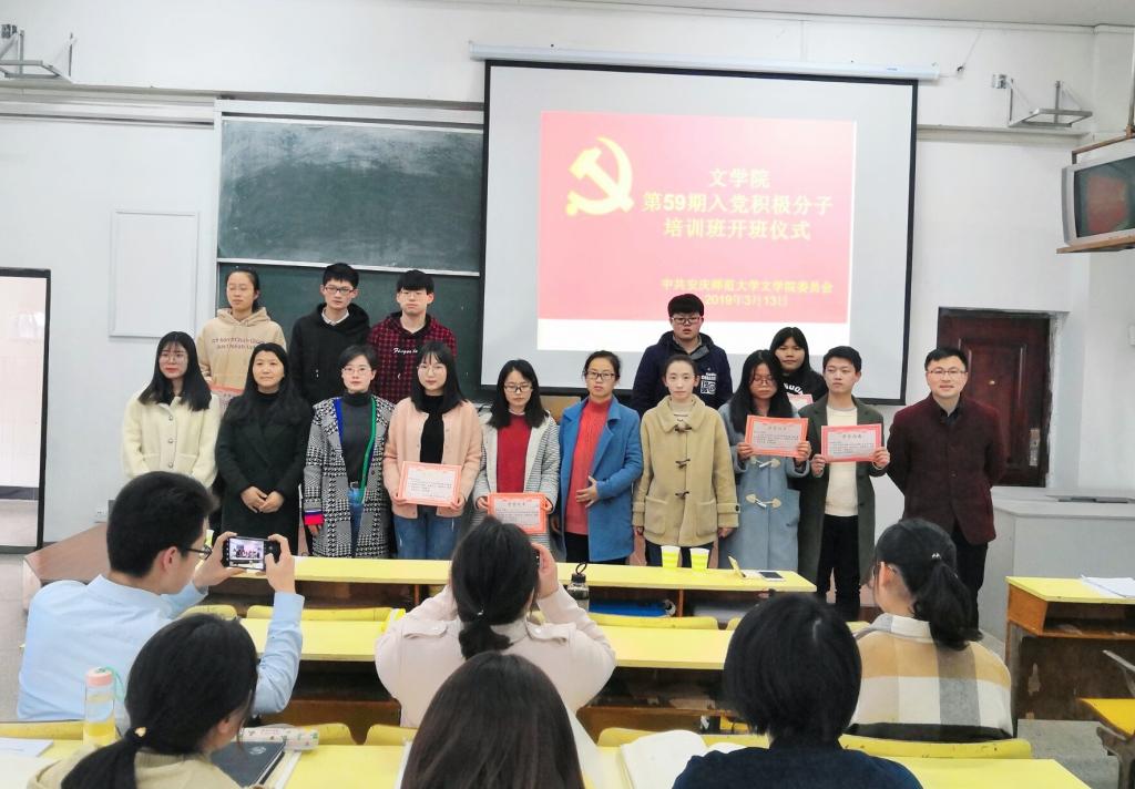3月13日下午,文学院举行第59期入党积极分子培训班开班典礼,文学院党委副书记黄晶晶、文学院学生党支部书记以及本期80名培训班学员参加了开班典礼。
