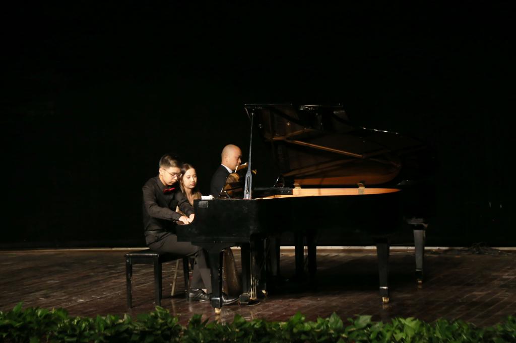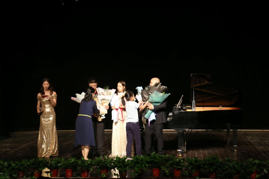 晚会在杨飞虎老师和特邀嘉宾刘苏昊冉共同演奏的钢琴协奏曲《黄河》中宣告结束,铿锵有力的乐曲表现了抗日救亡的革命激情,表现了伟大的民族精神和强烈的爱国情感,培养学生爱国主义情操。众多师生拥上台为许霖琳和杨飞虎送上鲜花,“杨老师你今天太棒了!”“学姐,加油,很厉害!”一声声称赞,一句句祝福,都沉溺在所有人的欢声笑语中。