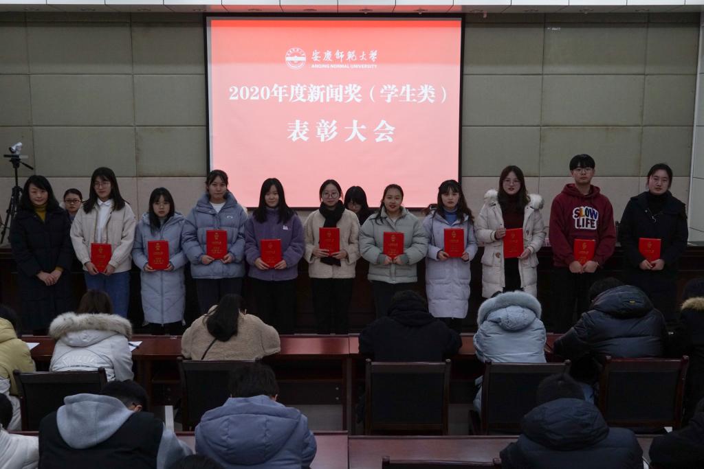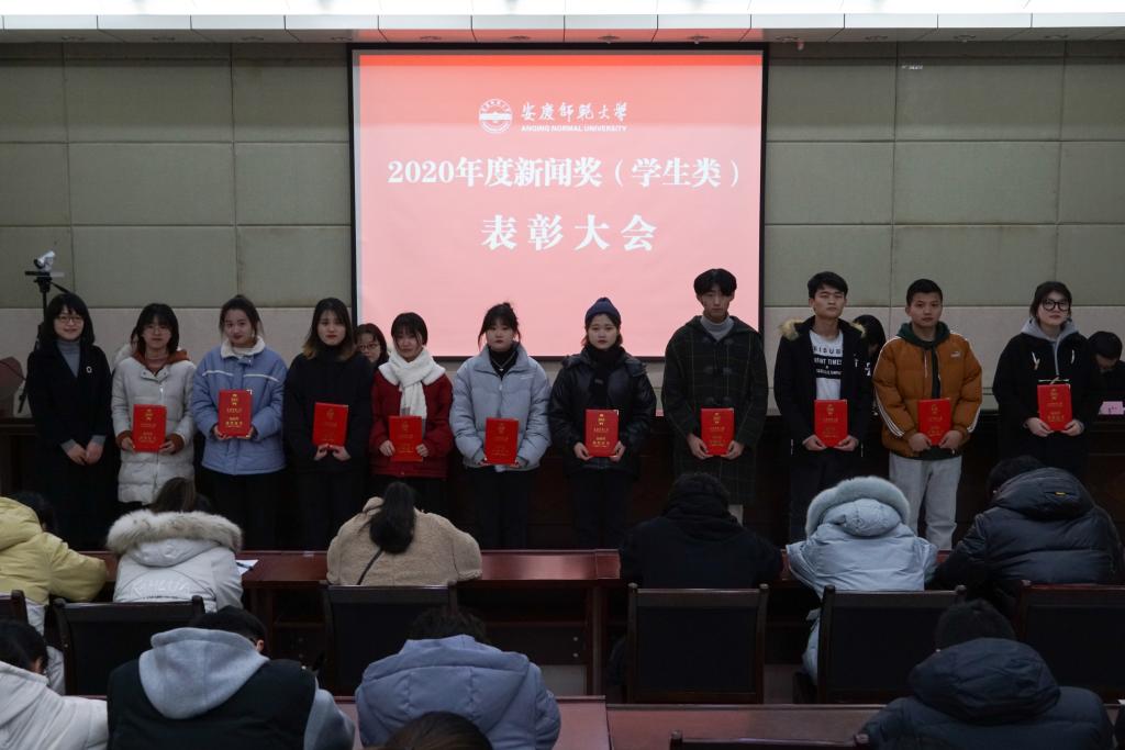 1月6日,beat365官网召开2020年度新闻奖(学生类)表彰大会。会议对2020年度获得beat365英国官网网站新闻奖(学生类)的110件作品进行表彰。校党委宣传部常务副部长陈秀、学生处副处长华秀梅、宣传部副部长钱敏参加会议,并为获奖学生颁奖。宣传部、校团委相关负责老师与百余名学生参加会议。