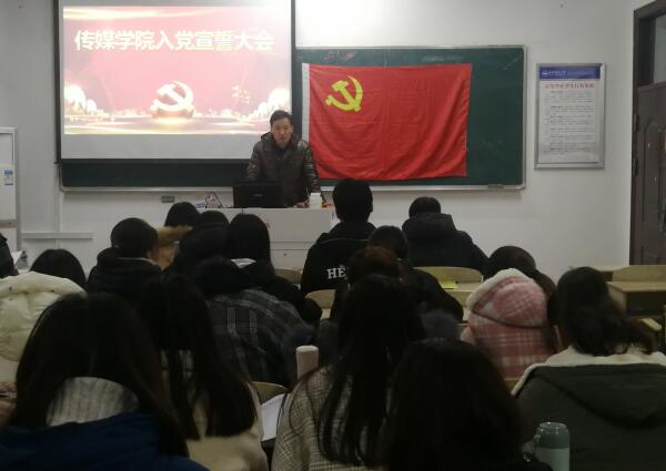 1月2日下午,传媒学院举行新党员入党宣誓仪式暨老党员重温入党誓词活动。学院党总支副书记张万茂、学生党支部书记和全体学生党员参加了活动。会议由新闻学学生党支部书记李俊主持。