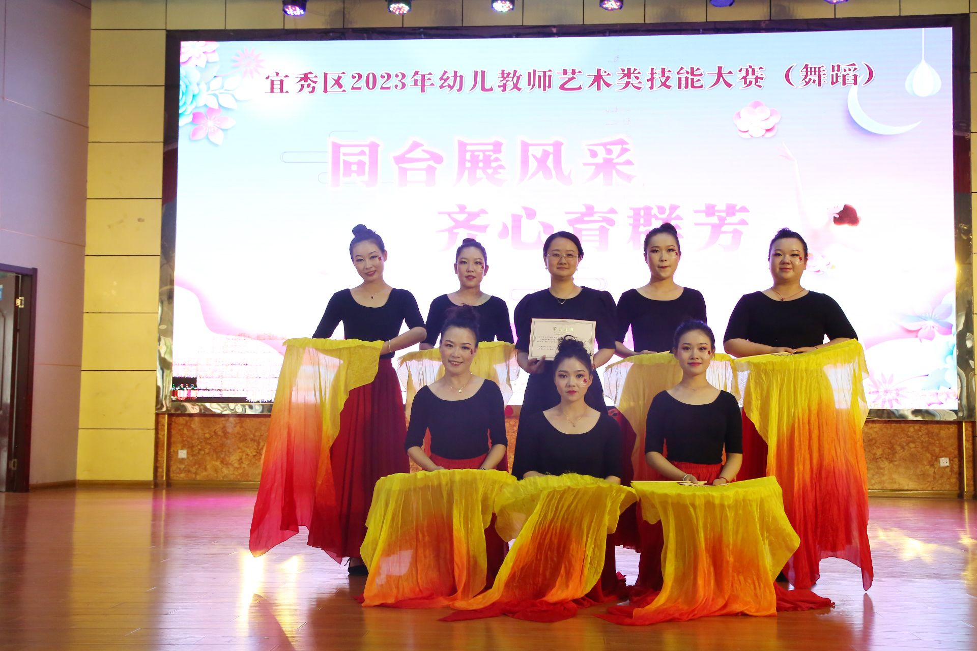 7月15日,beat365官网附属龙城幼儿园教师参加宜秀区“同台展风采,齐心育群芳”幼儿教师艺术类技能大赛。团体舞蹈《唱支山歌给党听》获得舞蹈类一等奖第一名,林晨老师获得绘画类三等奖。