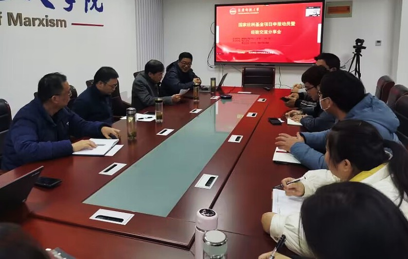 12月7日,马克思主义学院在213会议室召开2023年度国家社科基金项目申报动员暨经验分享交流会。罗本琦教授、章林教授、余江舟副教授、张二远副教授四位国家社科基金项目获得者作了经验交流和申报指导,会议采取线上线下相结合的方式进行,30余位教师参加了此次会议。副院长张俊生主持会议。