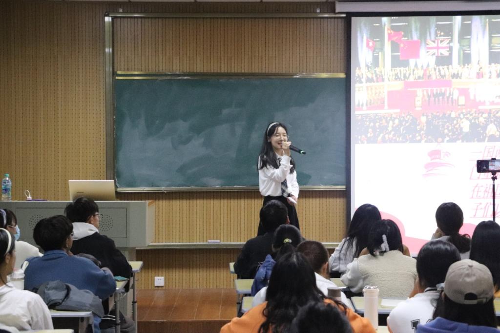 高亢激昂的背景音乐、精美细致的PPT、声情并茂的演讲……音乐、图片、演讲三者交相辉映,让新闻传播学类2021(6)班汪洋的演讲成功“出圈”。“我想利用新媒体技术,为大家呈现党的百年历程,这样也能让历史的演绎更加深刻。”谈及成功“秘籍”,汪洋表示,她为本次比赛做了充分的准备,练习字词发音已经成为她的日常。“我会经常在网上了解革命先辈的故事,一遍遍的练习也加深我对主题的理解。”